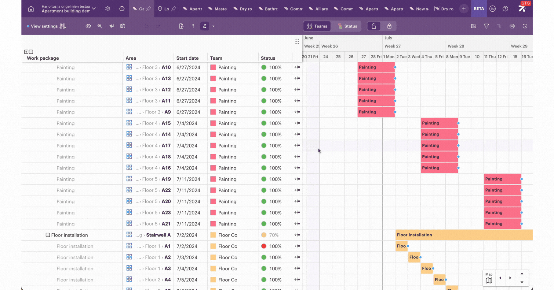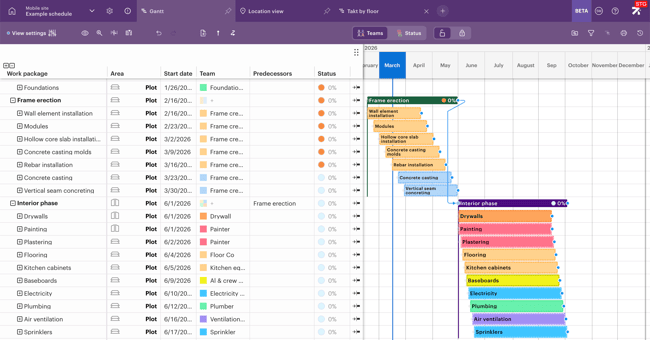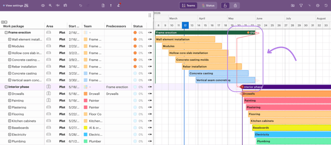 In the beta version, you can add dependencies between different work packages. These dependencies provide a visual way to show how work packages are linked to each other.