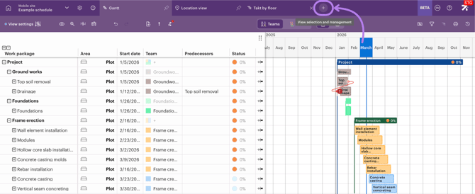 In the beta version, you can also create a Gantt-type view where work packages are ordered by their locations. This is similar to the Pivot by Area function available in the current version of Sitedrive.