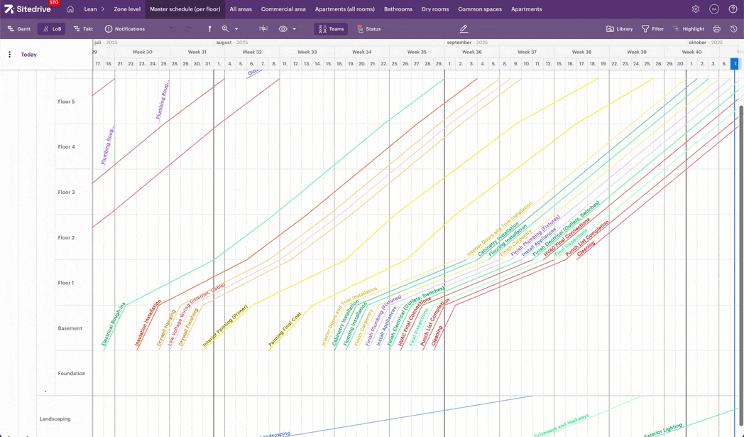 Custom Line of Balance Visualization: You now have the option to show Line of Balance (LoB) lines as distinct segments instead of continuous lines. This new visualization helps highlight the individual work package components that make up the overall flow. You can access this feature by right-clicking a work package in the LoB view and selecting "Show as detailed work packages." This setting is saved to your personal user preferences.