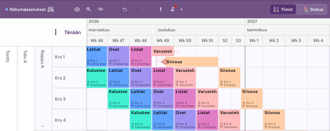 Esimerkiksi kipsilevytyksen on oltava valmis 1. kerroksessa ennen kuin maalaus voi alkaa 1. kerroksessa.
