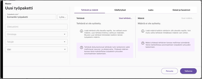 Esimerkiksi sisävaiheen töille valitaan ”Sisävaihe”.
